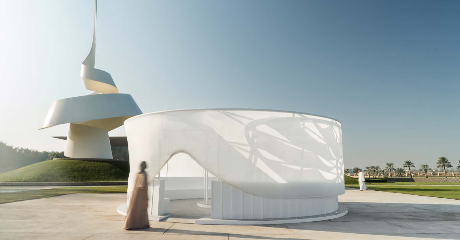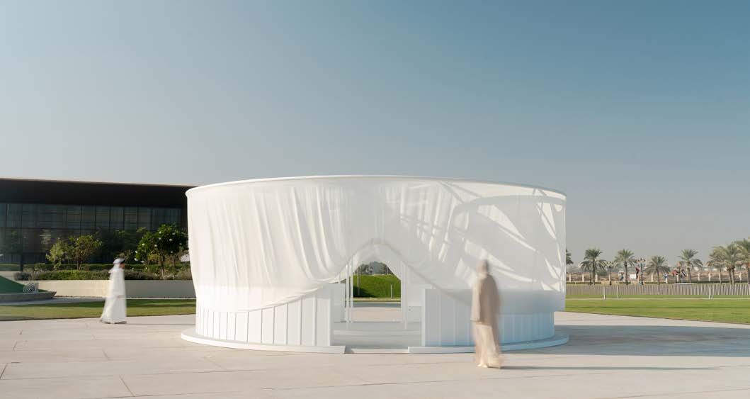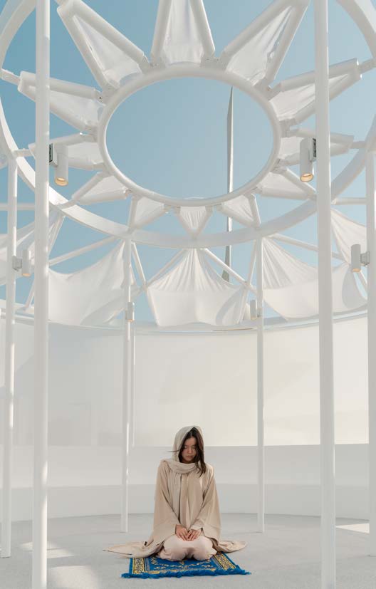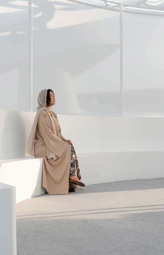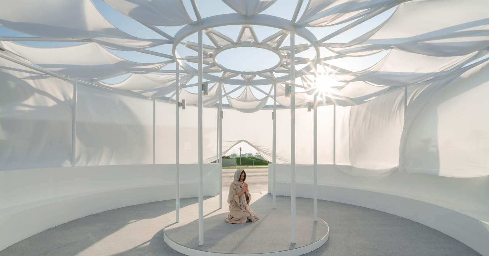 The Abaya Pavilion stands as an architectural homage to the abaya, transforming this iconic Islamic garment into a spatial experience that celebrates its cultural significance, beauty, and evolving role in contemporary society. The pavilion interprets the abaya’s essence through architectural elements, creating “an Abaya for Architecture and People” that serves as both shelter and symbol.